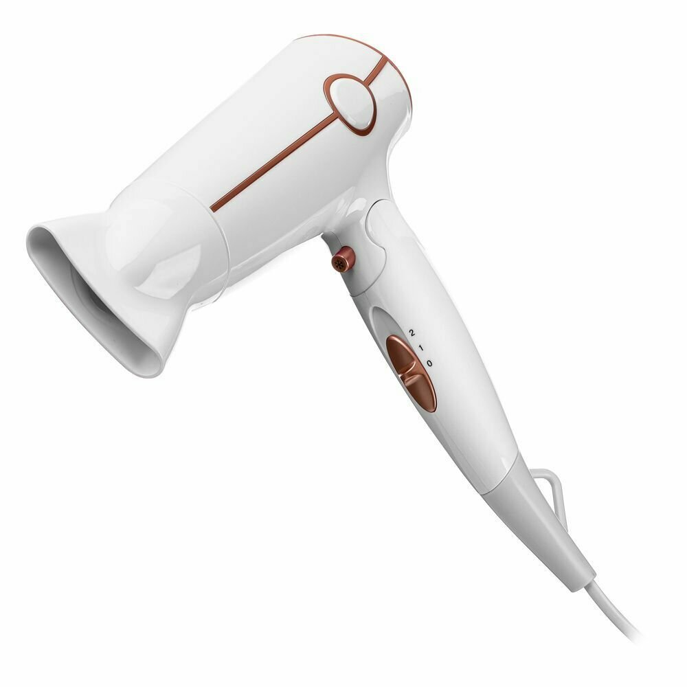 Компактный мощный 1,6-киловаттный фен из высококачественного термостойкого пластика с двумя режимами мощности для выбора оптимальной температуры воздушного потока. Идеален, чтобы брать его с собой в дорогу или хранить в небольшом ящике с одеждой. Благодаря складной ручке фен занимает минимум места при хранении и транспортировке. Удобный переключатель мощности на два положения: для бережной укладки или интенсивной сушки волос. Концентратор для укладки волос позволит точнее направлять воздушный поток, а удобная петелька для подвешивания – хранить фен всегда под рукой. Полную безопасность при использовании фена обеспечивает функция автоматического отключения при перегреве.