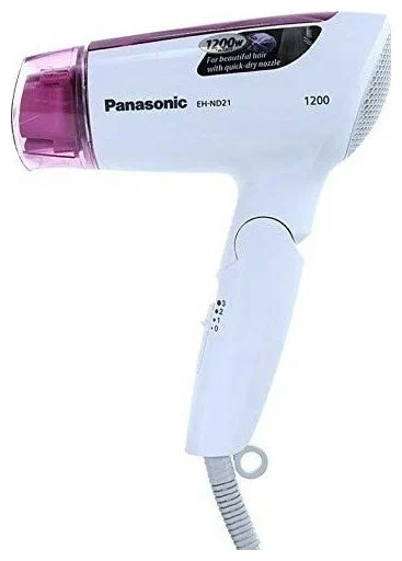 Фен Panasonic EH ND21 - это компактное устройство. Этот фен Panasonic имеет выходную мощность 1200 Вт для быстрой и эффективной работы. Фен Panasonic EHND21 обеспечивает наилучшую производительность и результаты для ваших волос. Этот фен оснащен насадкой для быстрой сушки, которая эффективно впитывает всю влагу ваших волос, обеспечивая идеальные результаты. Это средство безопасно в использовании и не приводит к ломкости или вьющимся волосам. У вас есть свобода выбора интенсивности подачи воздуха с помощью двух настроек "горячий" и одной "холодный". Он разработан таким образом, чтобы обеспечить удобство использования в дороге, и имеет тонкую конструкцию с возможностью складывания. Легкая сушка С помощью этого фена Panasonic вы можете полностью высушить влажные волосы за считанные минуты. Он имеет выходную мощность 1200 Вт для бесперебойной работы и приготовления завтрака. Насадка для быстрой сушки поочередно выдувает сильный и слабый воздух, отделяя каждую прядь волос для достижения эффективных результатов. Он сушит волосы от корней, сохраняя при этом влагу, сохраняя ваши волосы