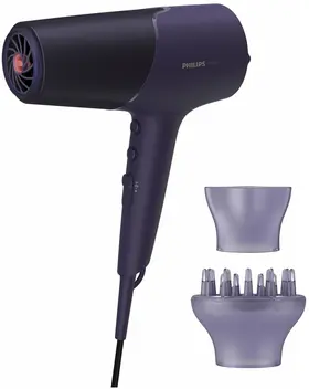Эффективный двигатель фена обеспечивает скорость воздушного потока до 110 км/ч для быстрого высыхания и облегчения укладки. Технология ThermoShield отлично защищает волосы от теплового повреждения, активно регулируя температуру воздуха в фене на оптимальном уровне. Высокоэффективная ионная система излучает до 80 миллионов ионов за одну сушку феном для получения прямых и блестящих волос.