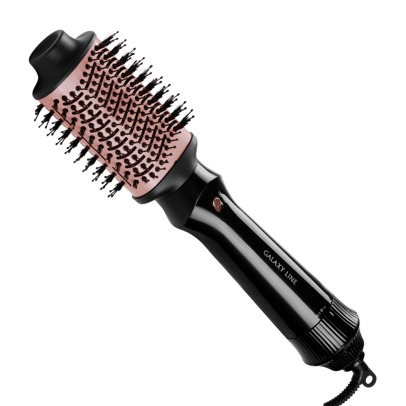 Фен-расческа безопасна в использовании, умеренный поток воздуха не повреждает волосы.