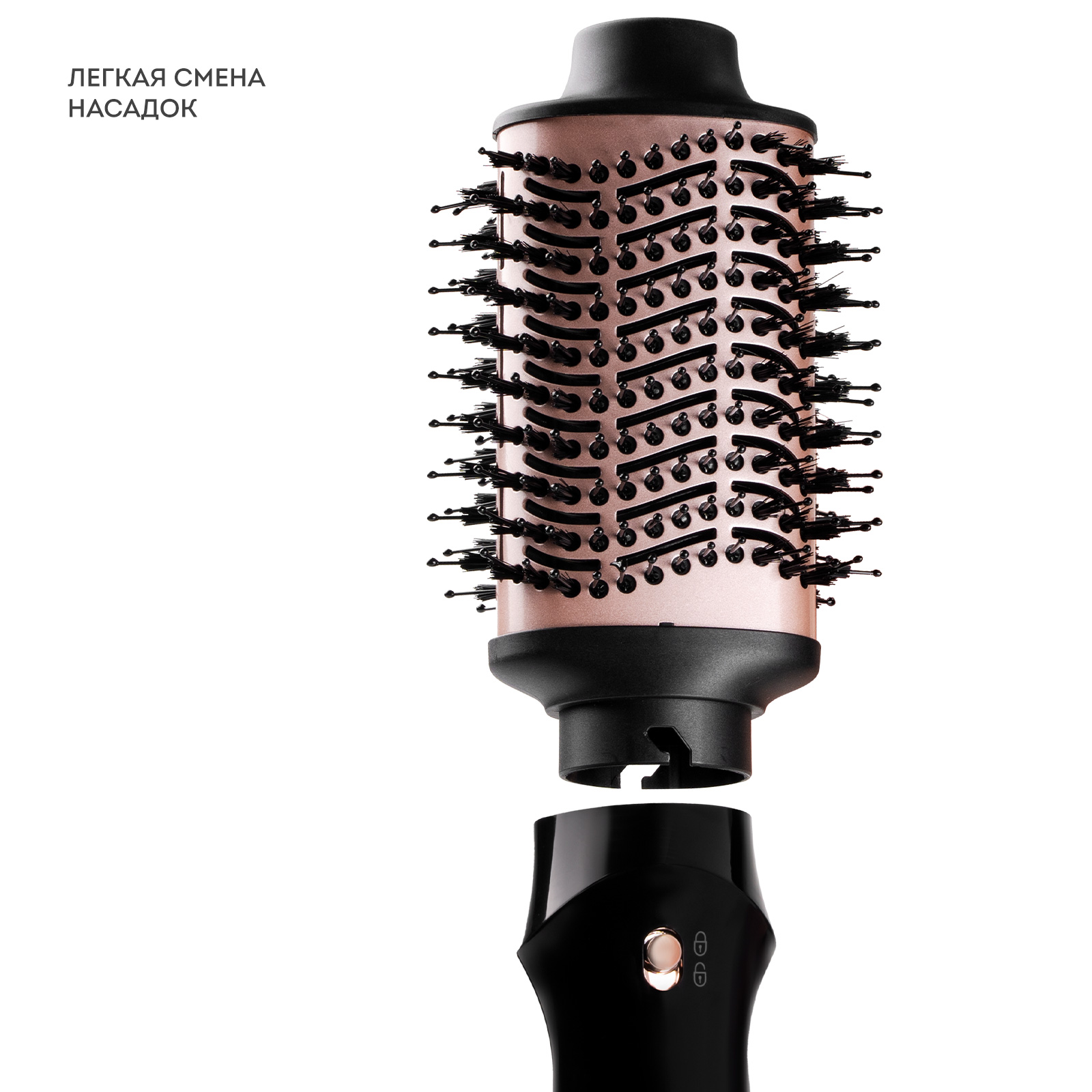 Насадка овальная со щетиной и зубчиками предназначена для закручивания локонов внутрь/наружу и придания объема у корней.