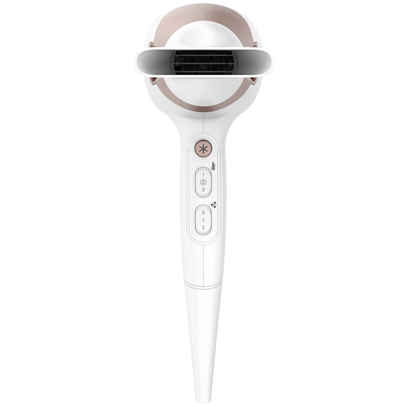 Для выбора предпочтительной температуры и скорости обдува предусмотрено две «качельки», позволяющие выставить шесть различных настроек. Например, для защиты ваших локонов от перегрева воспользуйтесь режимом Thermo Control. Зафиксировать созданную укладку поможет ультрахолодный воздух: для его подачи нужно нажать на клавишу с пиктограммой в виде снежинки.