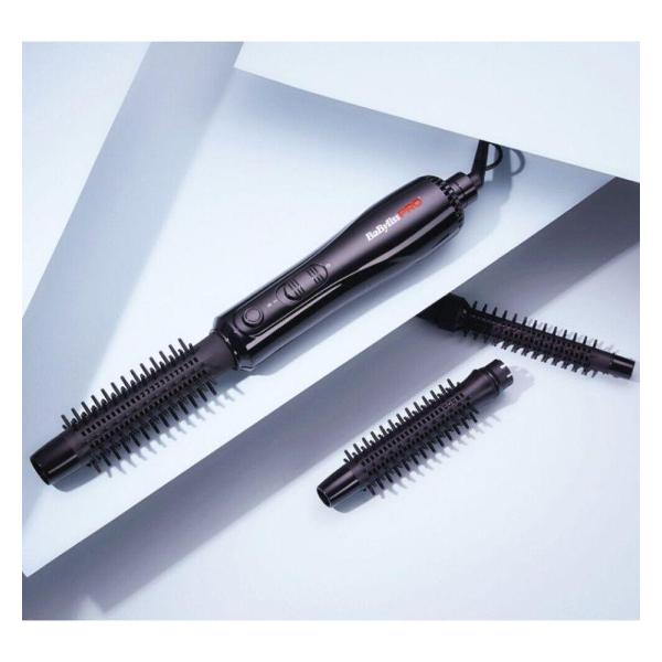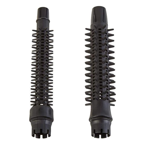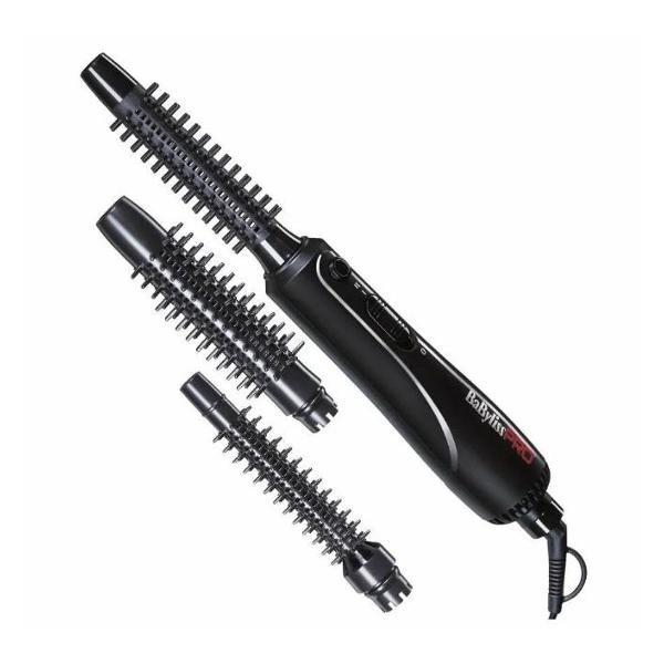 3 взаимозаменяемых щетки разных диаметров: 14 мм для коротких волос, 19 мм для волос средней длины, 24 мм для длинных волос. Щетинки убираются внутрь для аккуратного снятия прядей и сохранения упругих локонов. Петля для подвешивания.