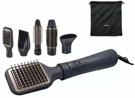 фен, большая круглая щётка 38 мм, средняя круглая щётка 30 мм, насадка для придания объёма, концентратор, плоская щётка для выпрямления