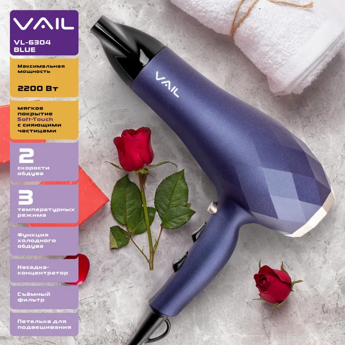 Особенности фена, выпрямителя волос: Защита от перегрева, Вращение шнура 360°, Петля для подвешивания