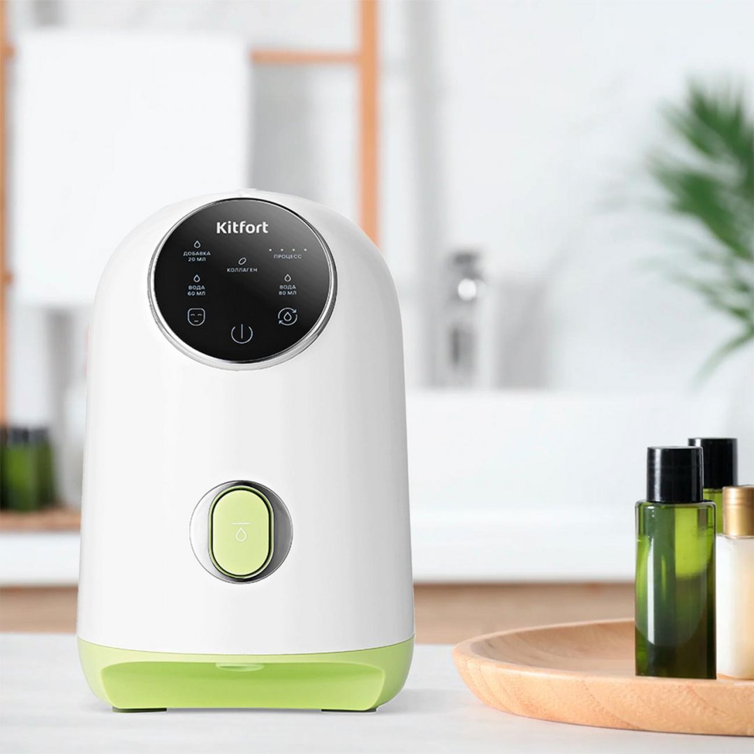 Аппарат для приготовления коллагеновых масок Kitfort КТ-3127-2 позволяет создавать средства для ухода за кожей лица с различными наполнителями, такими как фрукты, ягоды, овощи, семена, мед. Для этого необходимо налить в емкость воду или молоко, добавить сок и одну таблетку коллагена. Приготовление маски занимает 5 мин, после чего массу нужно вылить в форму для остывания. Производитель рекомендует наносить маску на очищенное лицо без кожных воспалений.
