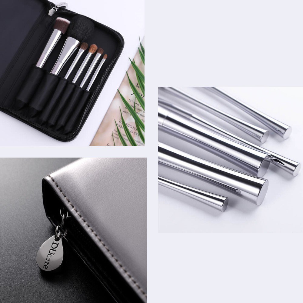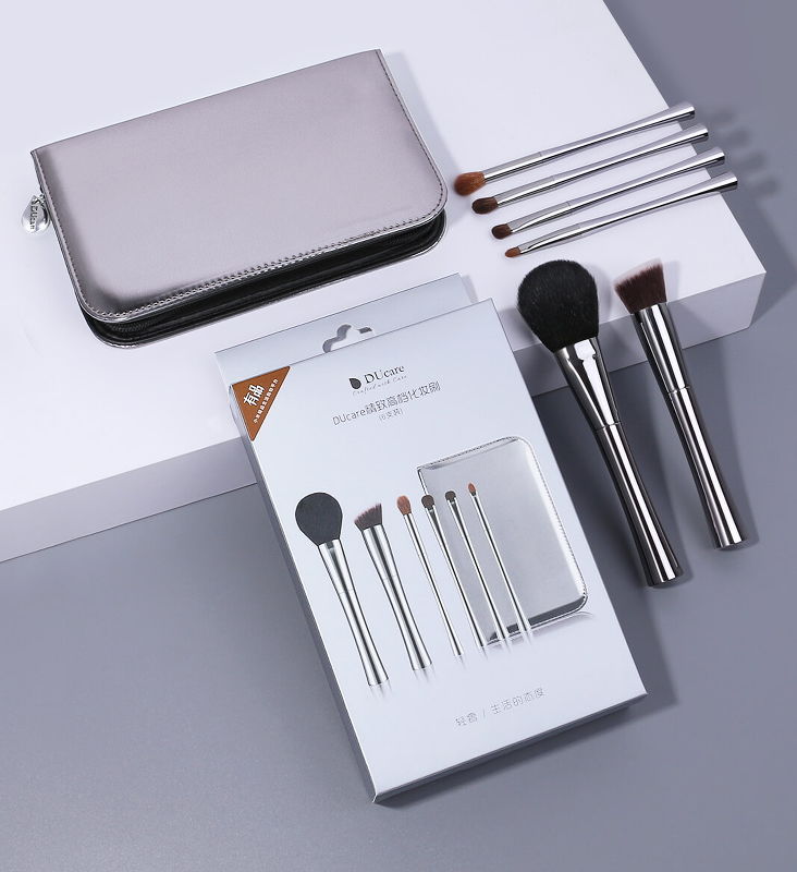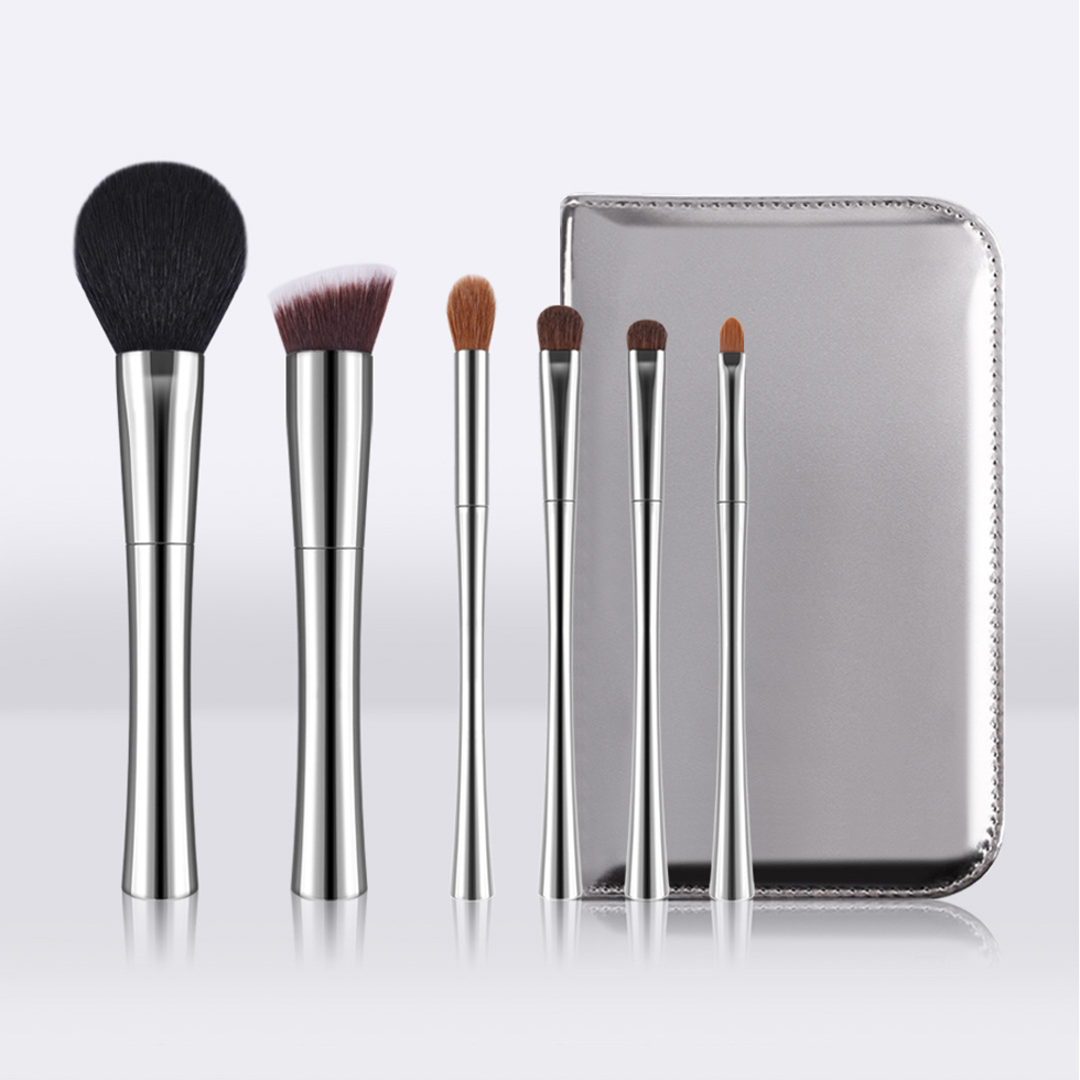 Комплектация: Кисть для пудры, кисть для тональной основы, большая кисточка для теней, малая кисточка для теней, кисточка для губной помады, косметичка.