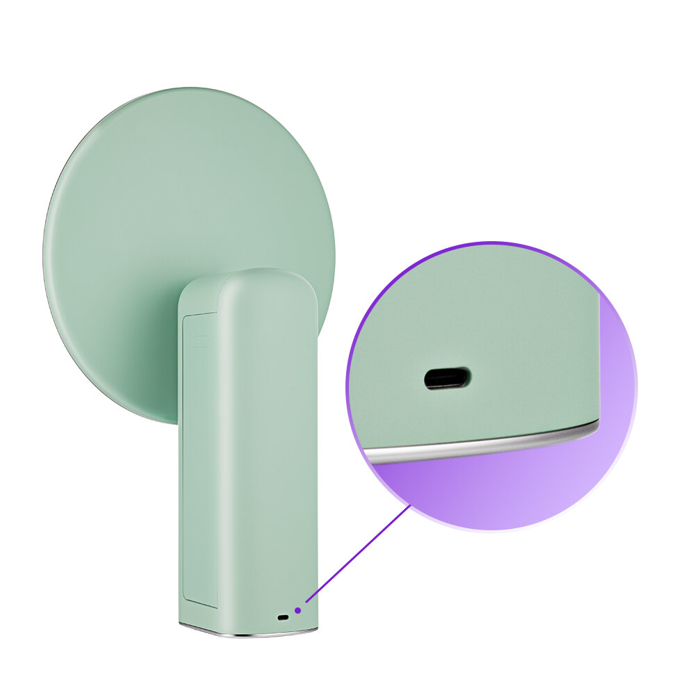Зеркало работает от встроенного аккумулятора. Это позволяет пользоваться зеркалом и включать подсветку, а также ультрафиолетовую лампу в любом удобном месте. Шнур USB Type-C в комплекте.