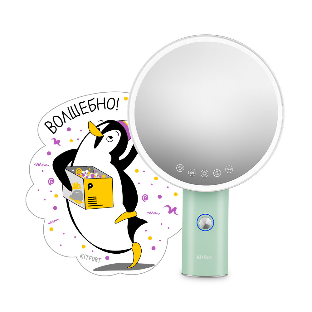 Зеркало КТ-3170 выполнено в дизайне коллекции «Penguin Pack», который отражает энергию и яркость нового маскота - пингвина по имени Питер. В комплекте с прибором вы найдёте креативный магнит с этим персонажем.