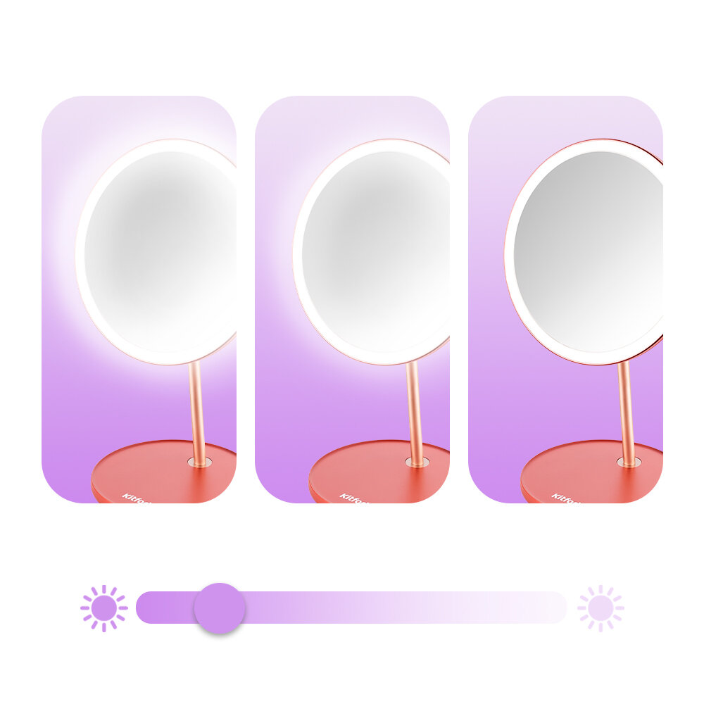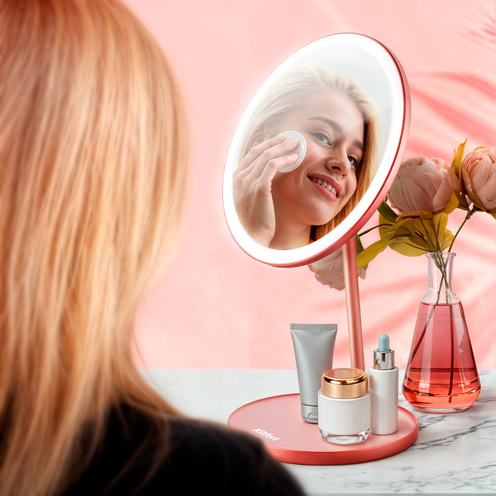 С косметическим зеркалом КТ-4123 нанесение макияжа и уход за собой станет удобнее. Зеркало устанавливается на подставку, как на шарнир, благодаря этому вы можете регулировать угол наклона зеркала. Зарядка происходит с помощью USB-C.