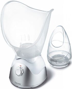 Сауна для лица — для здоровья и красоты. Для интенсивного ухода за кожей и ингаляций. Насадки для косметического ухода за лицом. Паровая насадка для ароматерапии. Паровая насадка для ингаляций через рот и нос. Пар регулируется плавно. Высококачественный алюминиевый резервуар для воды.