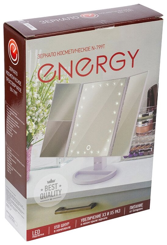 Зеркало ENERGY EN-799Т, подсветка, 22.3 х 16.3 см, увеличение 3Х/5Х, 4хАА