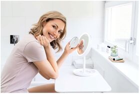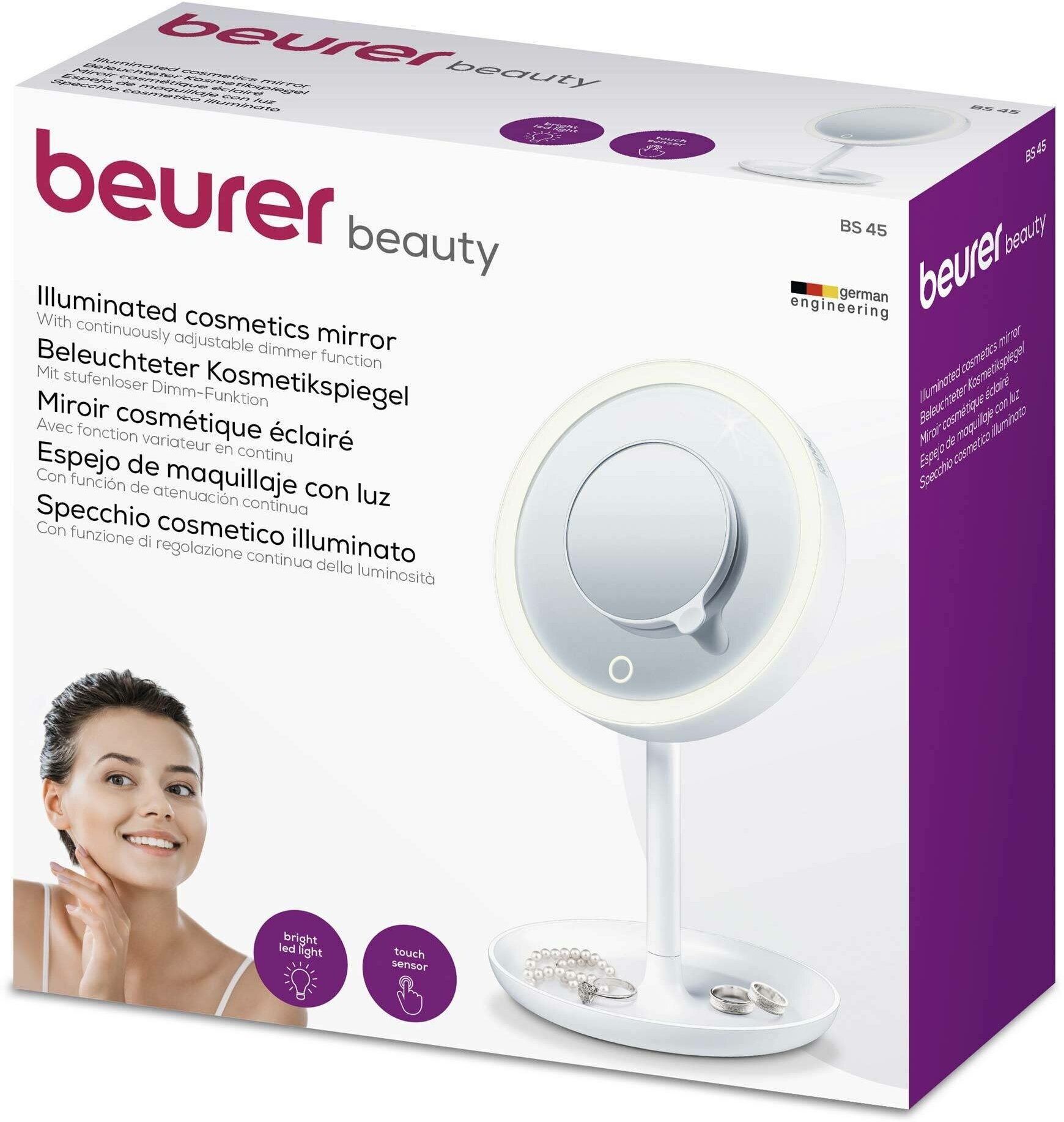Косметическое двухстороннее зеркало Beurer BS45 584.04 — удобный и практичный аксессуар для уходовых процедур в домашней обстановке. Диаметр зеркальной поверхности составляет 17,5 см, а высота подставки — 33,7 см. Корпус изготовлен из высококачественного пластика.