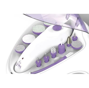 | Насадки в комплекте: | Маленький крупнозернистый диск Скругленная насадка Точная цилиндрическая насадка Большой крупнозернистый диск Большой мелкозернистый диск Диск для полировки Инструмент для кутикулы Маленький мелкозернистый диск Мягкий конус Насадка для приподнимания кутикул Тонкий заостренный конус Щеточка для ногтей |