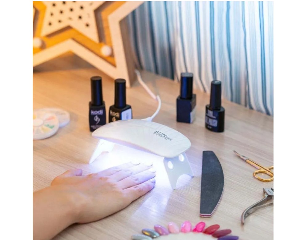 Лампа проста в работе, долговечна и безопасна в использовании - просто идеальна для домашнего использования, а благодаря размерам и складным ножкам ее легко взять с собой в поездку, и на полке для маникюрных инструментов она займет совсем немного места. Она легко помещается даже в женский клатч!