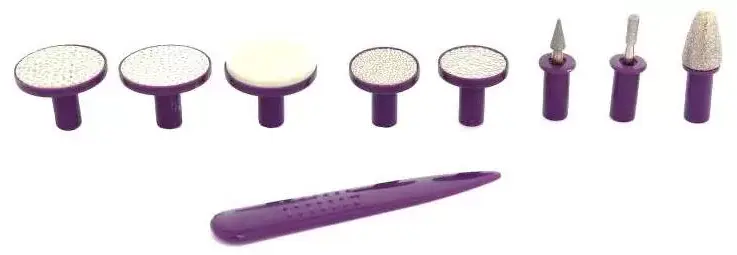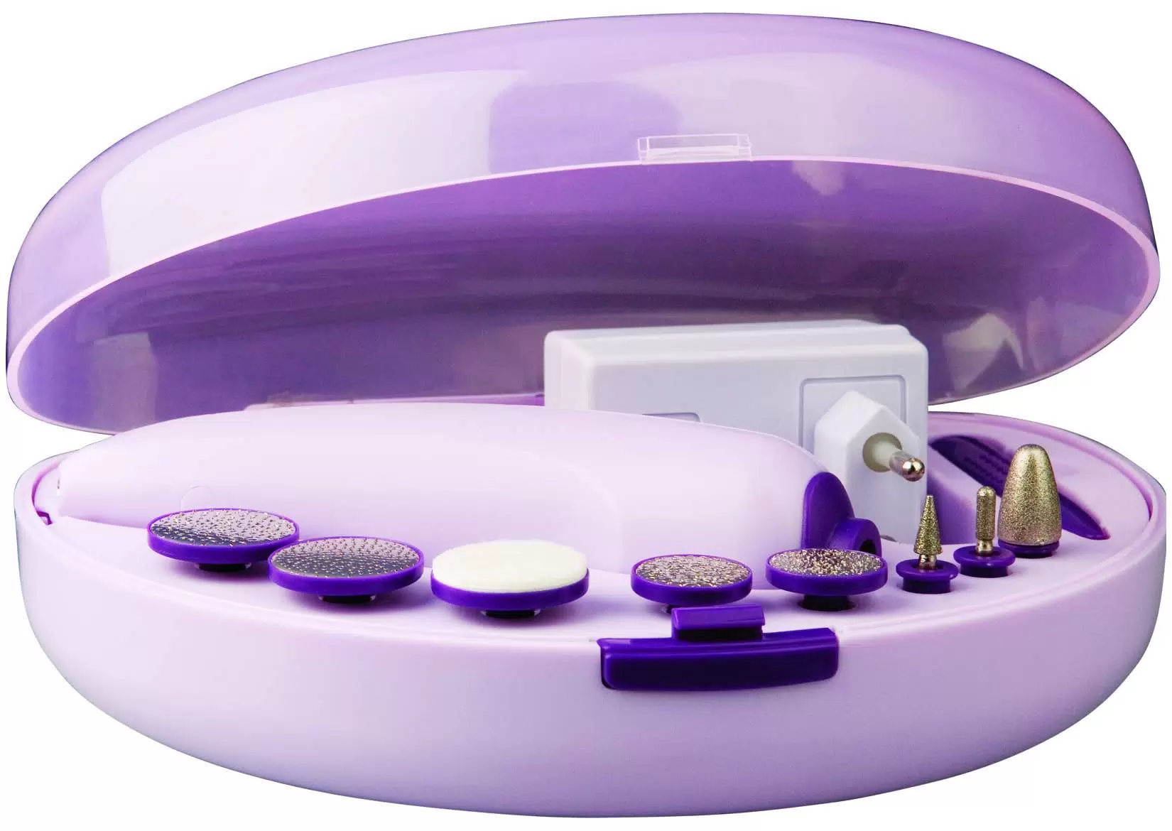 комплект насадок, документация, футляр, сетевой адаптер, палочка для удаления кутикулы