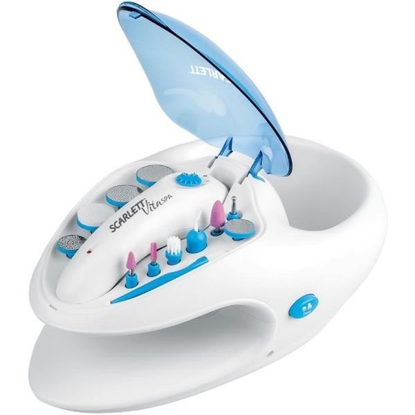Состав набора комплект насадок, ванночка для гидромассажа, лопатка для кутикулы, подставка со встроенной сушкой, контейнер для хранения