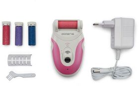 Педикюрный набор для удаления огрубевшей кожи, натоптышей, мозолей на ногах. В набор входят 3 роликовые насадки с абразивной поверхностью для кожи разной чувствительности. 2 скорости вращения роликовых насадок. Светодиодная подсветка. Работа от аккумулятора 40 мин. Время полной зарядки 480 мин.