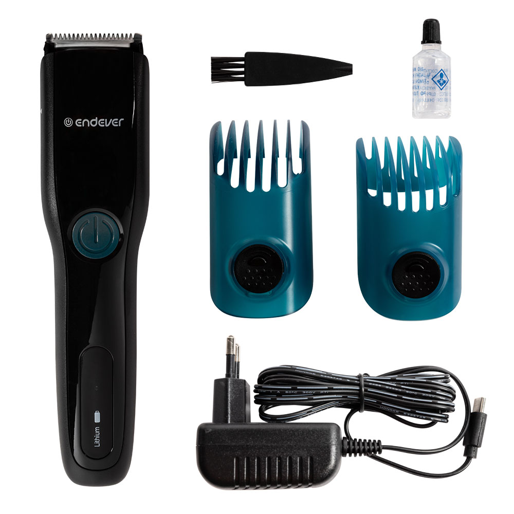 Комплект поставки — Машинка для стрижки, Сетевой адаптер, Шетка для очистки, Два гребня-насадки, Масло,