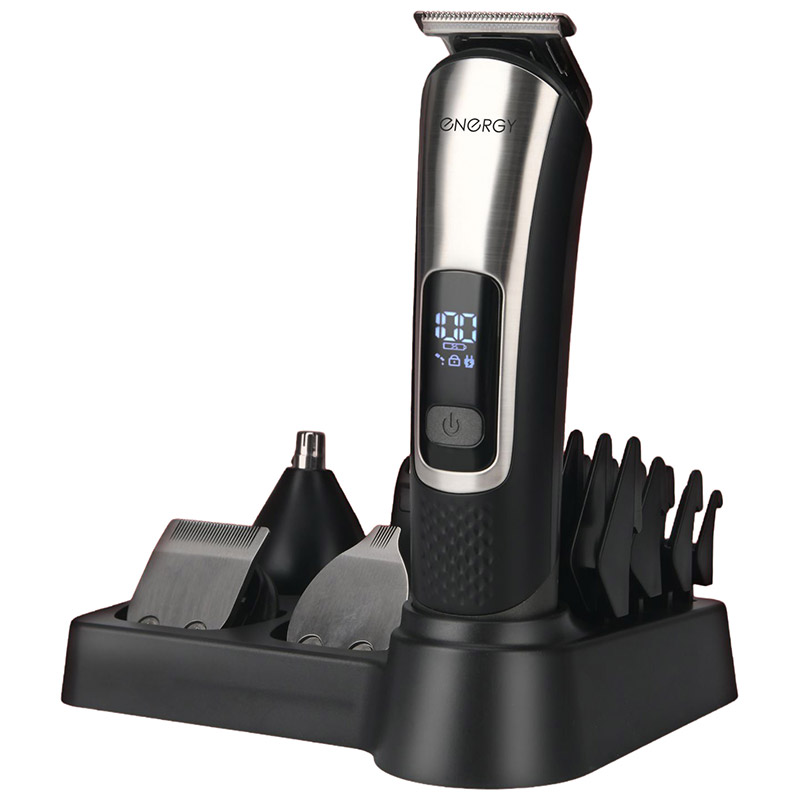 Мощность: 5 Вт LED дисплей Бритва, триммер, машинка для стрижки 2 насадки для волос: Т-образная насадка, U-образная насадка 5 насадок-гребней: Т-образные 3 мм/6 мм/9 мм/12 мм; U-образная телескопическая 3 мм-6 мм Насадка-триммер для носа и ушей Насадка-бритва Лезвие из нержавеющей стали Встроенный аккумулятор: Li-ion 18650, 3,7 В, 1300 мАч Время зарядки: 180 мин Время работы: 300 мин Зарядка от USB Вход: 5 В, 1 А Выход: 3.7 В В комплекте: Щеточка для чистки лезвий Масло для смазки лезвий Подставка USB кабель