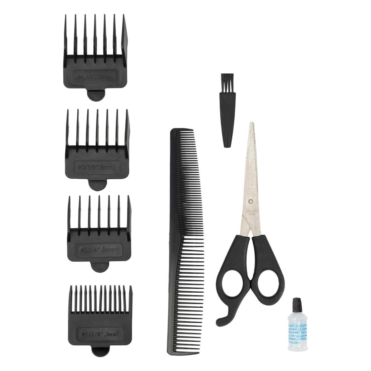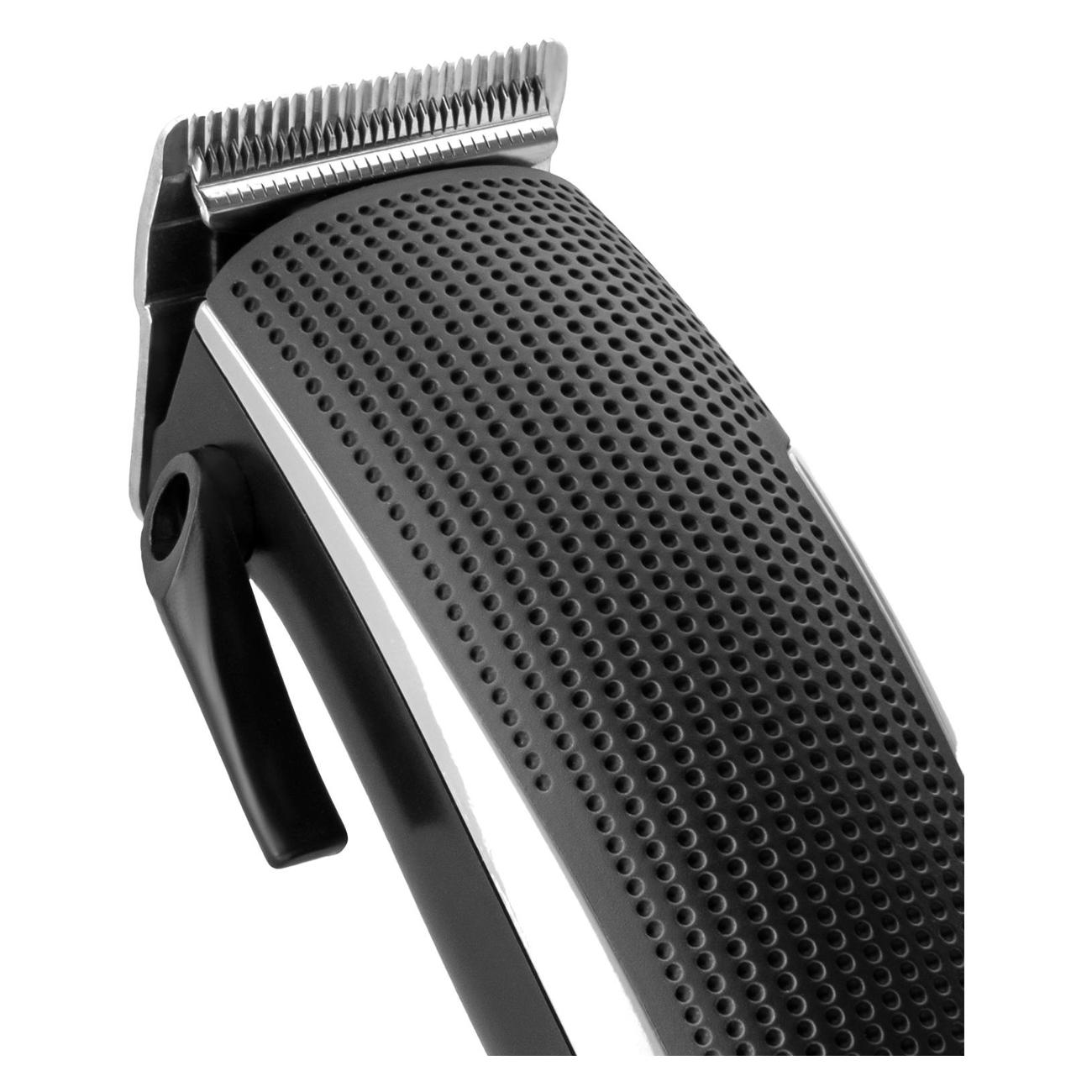 Четыре насадки укомплектованы стальными лезвиями шириной 45 мм. Модель обладает четырьмя режимами, позволяющими проводить стрижку длиной от 1 до 12 мм. Устройство работает только от сети переменного тока. Допустимое напряжение — 220 В. Для подключения задействуют кабель длиной 160 см. Размеры — 23,5х6х16 см. Вес — 0,45 кг.