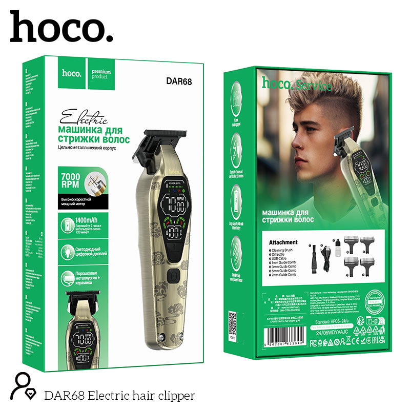 7. Аксессуары: щетка*1, флакон с маслом* 1, кабель для передачи данных * 1, ограничительная расческа*4 (1/3/5/7 мм)