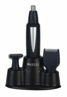 - расческа, щеточка для чистки, подставка для хранения; триммер для стрижки в носу и ушах, 2 насадки для стрижки волос, мини-бритва, универсальный триммер