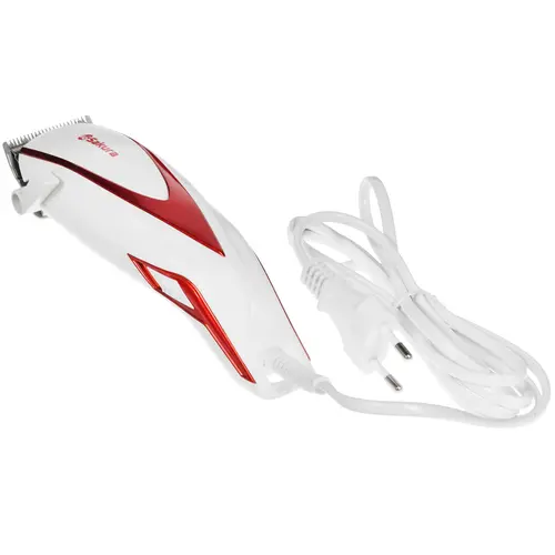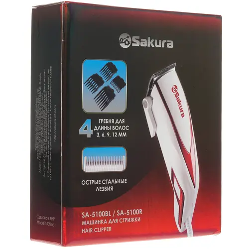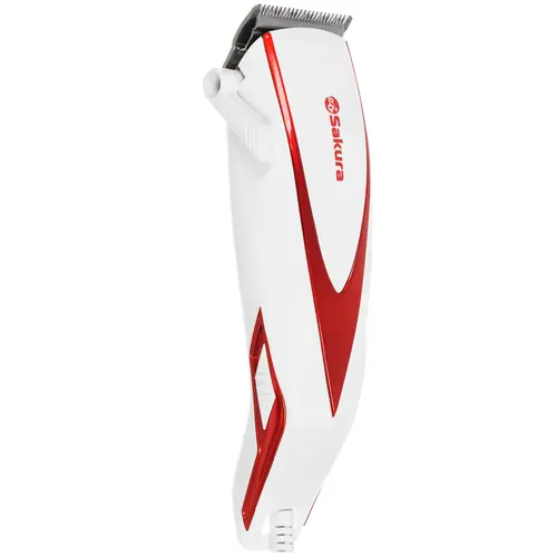 Машинка для стрижки Sakura SA-5100R бело-красного цвета оснащена вибрационным мотором, отличающимся тихой работой и малым потреблением электричества. Минимальное количество подвижных частей в конструкции машинки предусматривает ее надежность и длительный срок службы. Эргономичный корпус с боковыми вставками позволяет легко удерживать машинку в руке и маневрировать ей в процессе стрижки. Чтобы выбрать длину стрижки, можно отрегулировать положение лезвий, а также использовать насадки-гребни. Их в наборе 4 штуки: 3, 6, 9 и 12 мм.