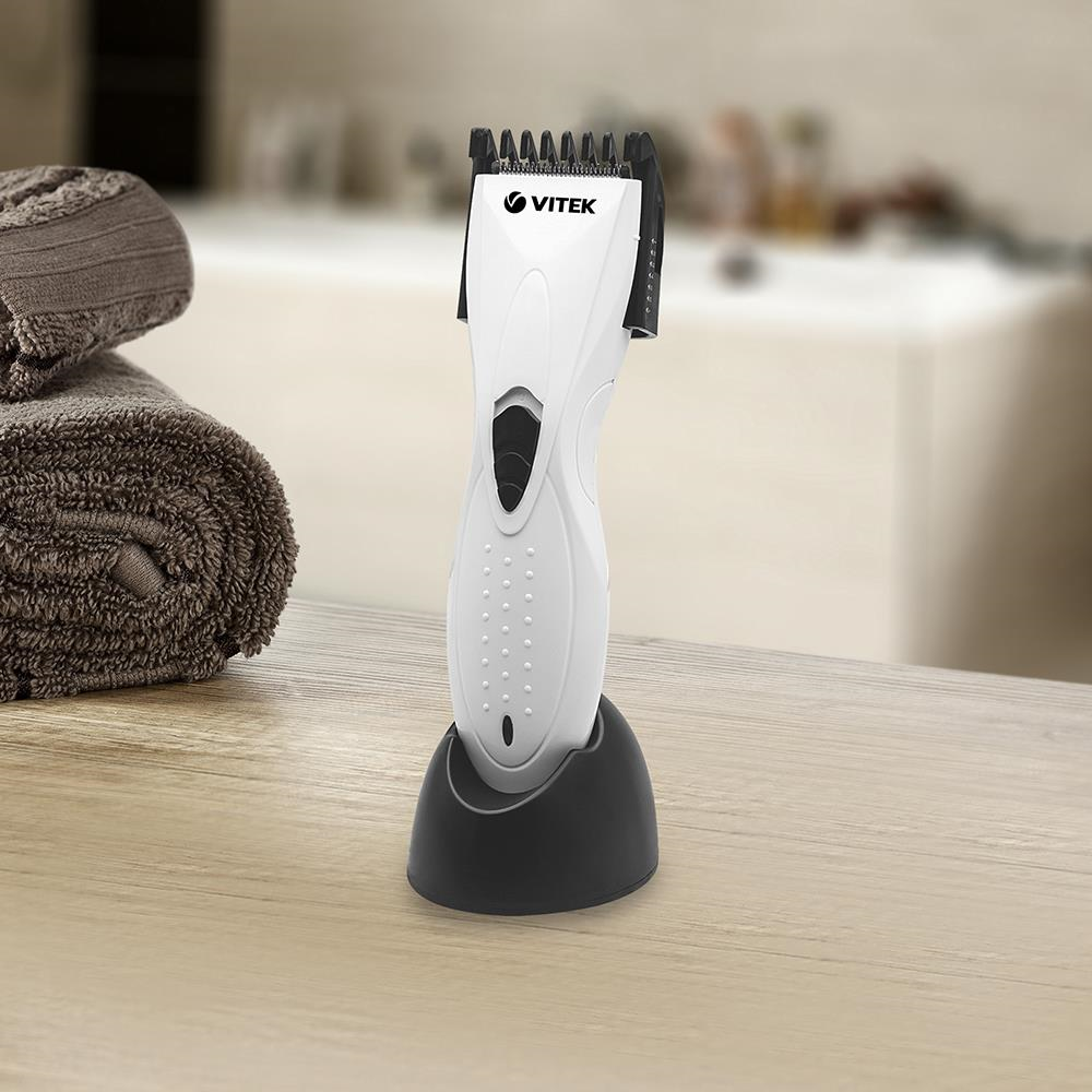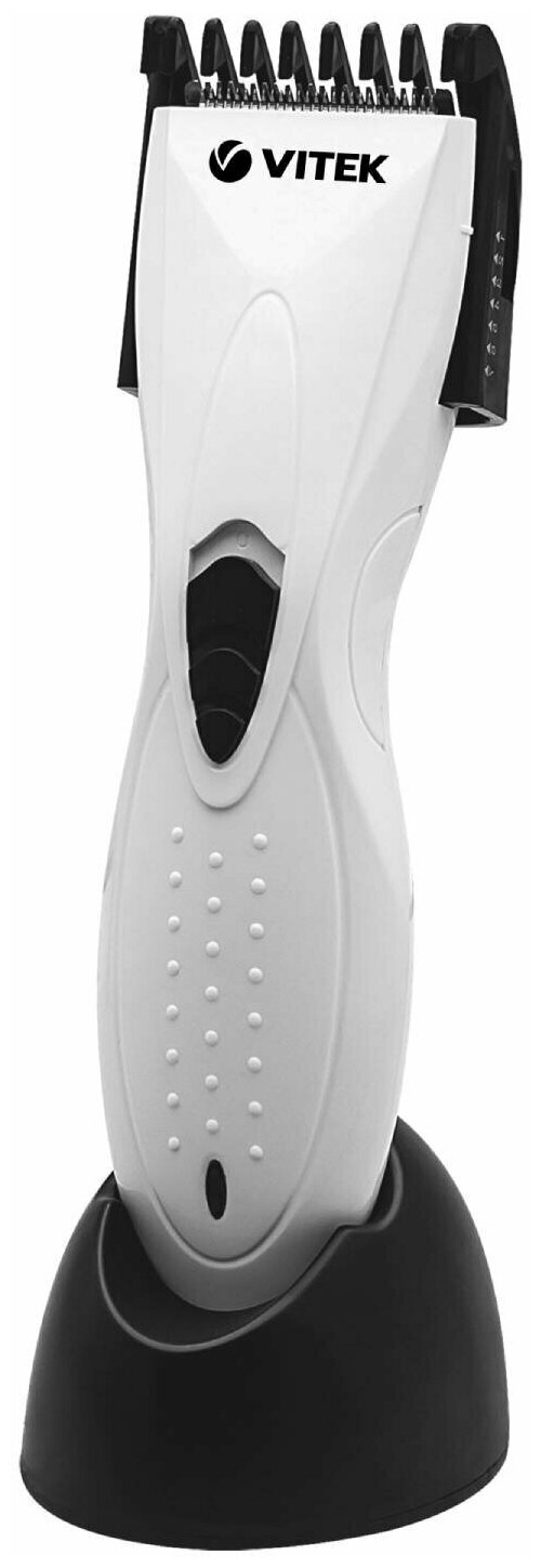 Если Вам нужна простая, надежная и эффективная рабочая лошадка, то машинка для стрижки Vitek VT-1351 станет отличным приобретением. Она смотрится одновременно строго и изящно. Более того, в набор для стрижки Vitek 1351 входит телескопическая насадка. С её помощью можно создавать самые разные стрижки, которые удовлетворят любого человека. Меняя установку, вы легко сможете изменить длину стрижки - для этого не нужно иметь практически никакого опыта в деле стрижки. Защитная крышка делает работу ещё более безопасной и простой. В состав набора входит смазочное масло для машинки, расческа и щёточка.