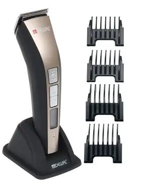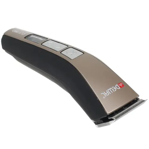 Машинка для стрижки DEWAL CUT PRO 03-961 облачена в стильный черно-золотистый корпус из пластика. За счет своей изогнутой формы и малого веса (280 г) она удобно лежит в ладони. Длину стрижки можно варьировать от 0,7 до 1,9 мм благодаря технологии электронной регулировки. Так же это можно сделать посредством замены насадок, которых в комплекте поставки предусмотрено 4 штуки (3, 6, 9 и 12 мм). Нож модели шириной 4.5 см изготовлен из нержавеющей стали.