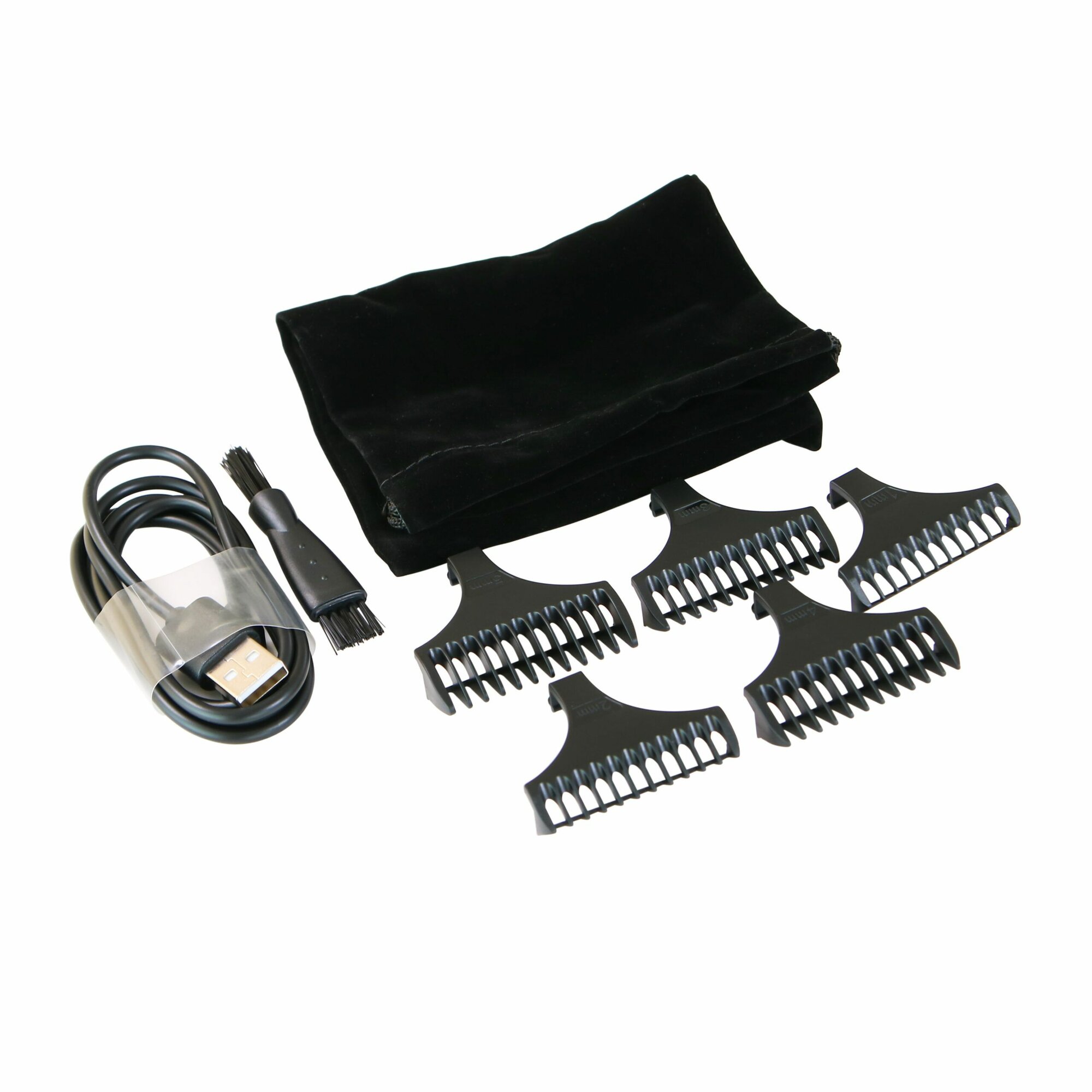 Машинка для стрижки волос - 1шт. Насадки для стрижки - 5шт. Щетка - 1шт. Мешок для хранения - 1шт.