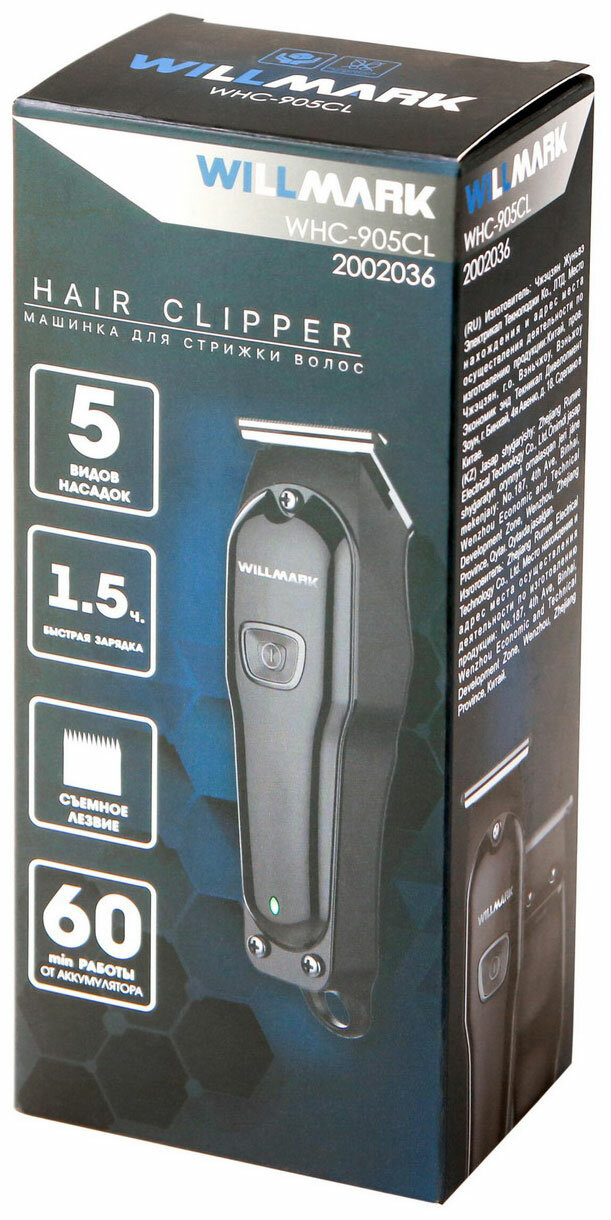 Машинка для стрижки волос WILLMARK WHC-905CL представляет собой устройство, которое порадует продолжительным автономным функционированием на протяжении 60 минут – столь впечатляющую работоспособность обеспечивает мощный встроенный аккумулятор. Прибор обладает возможностью быстрой зарядки за 1,5 часа. Особенностью машинки является зарядка от USB-порта, кабель для зарядки входит в комплектацию прибора. Расположенная на корпусе петля для подвешивания придется как нельзя кстати для удобного хранения. Для выбора желаемого варианта длины предстоящей стрижки к прибору в комплекте поставляются 5 видов насадок. Минимальная длина стрижки составляет 0.5 мм, тогда как максимальная - 5 мм. Лезвия машинки для стрижки WILLMARK WHC-905CL выполнены с использованием нержавеющей стали, не способной к преждевременной утрате режущих характеристик. На поверхности данного материала вы не отметите появление ни коррозийного налета, ни ржавчины на протяжении всего эксплуатационного периода. Прибор оснащен индикатором зарядки, что облегчит эксплуатацию машинки. Используя щеточку из комплекта, вы без труда удалите накопившиеся в устройстве загрязнения. Так же облегчит уход за прибором наличие съёмного лезвия.
