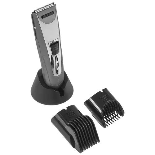 Питание может подаваться от сети, машинка работает и в автономном режиме. Внутри конструкции установлен аккумулятор, он обеспечивает функционирование устройства в течение 45 минут. В комплекте предоставляется подставка, на которую устанавливается машинка. Время зарядки составляет 480 мин.