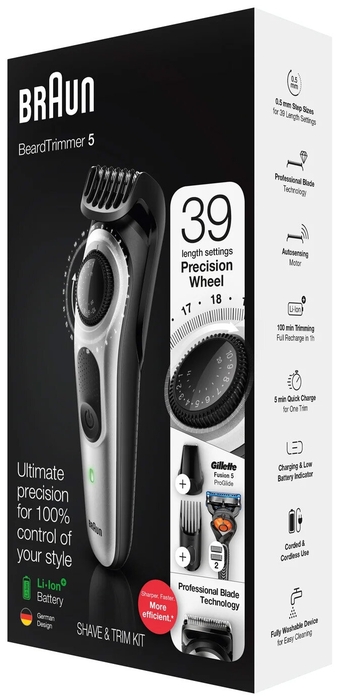 - гребень 1 - 10 мм; гребень 11 - 20 мм; детальный триммер; щеточка для чистки; бритва Gillette Fusion5 ProGlide