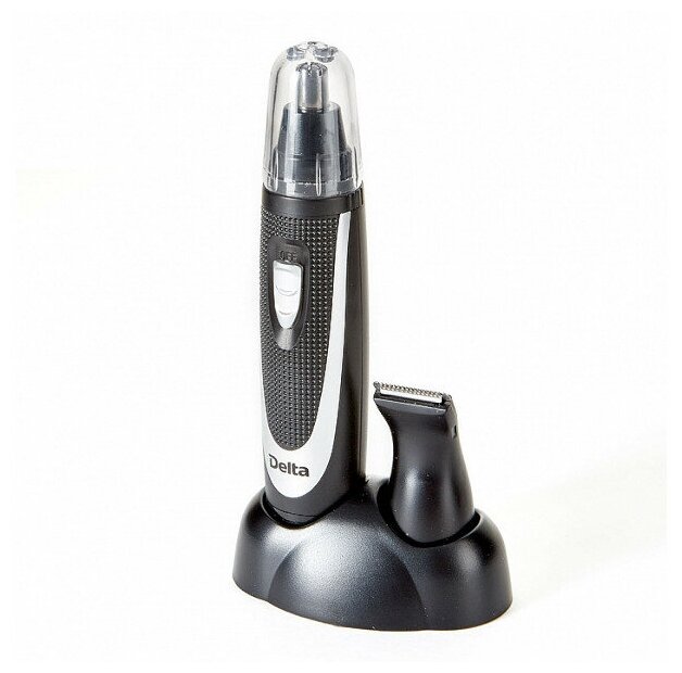 Триммер для носа, усов и бороды со сменными насадками и базой для установки прибора. Бережное удаление нежелательных волосков. Компактный размер триммера позволяет брать его с собой в дорогу. Низкий уровень шума и простота использования. Защитная крышка рабочей головки.
