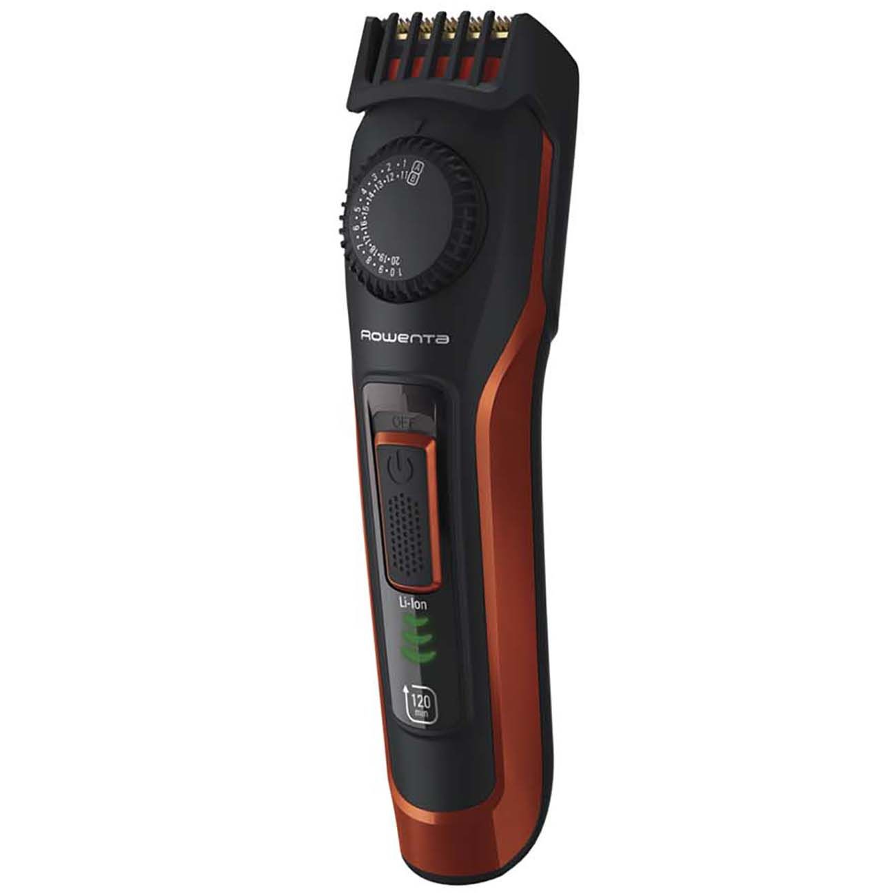 Триммер предназначен для ухода за волосами на лице. Две насадки, входящие в комплект, позволяют настраивать длину стрижки от 0 до 20 мм с шагом 0,5 мм. Самозатачивающиеся лезвия из нержавеющей стали с титановым покрытием долго остаются острыми. Они за один проход аккуратно срезают густые и жесткие волосы. После использования их рекомендуется промыть под струей воды.