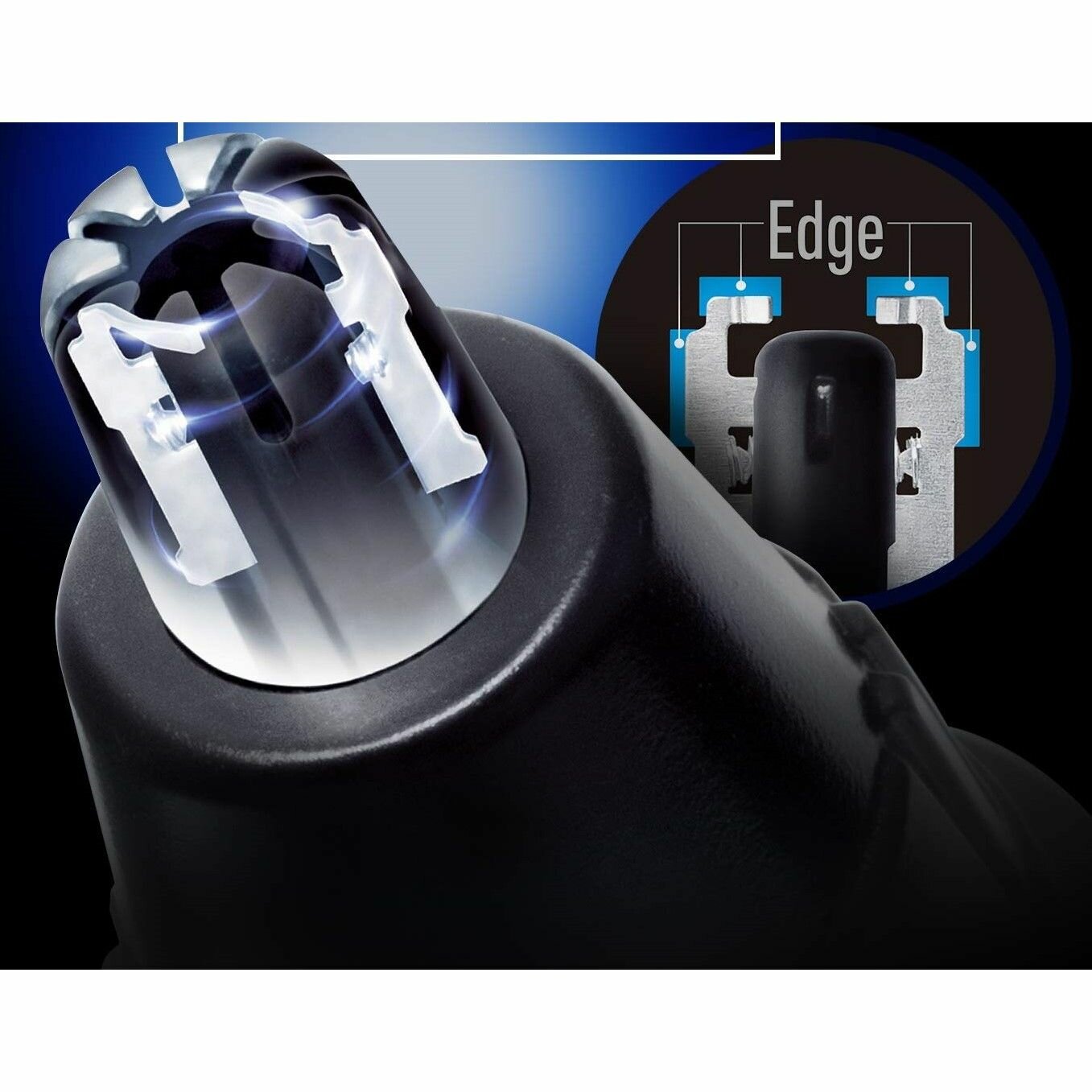 Во время подравнивания срезанные волосы втягиваются в сборную камеру, что помогает поддерживать чистоту носа. Вакуумная система быстро и аккуратно собирает срезанные волосы, которые в противном случае оставались бы в ноздрях или ушах. Это также упрощает уборку.