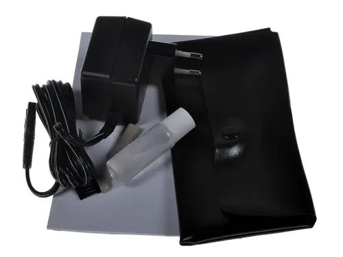 1 регулируемая насадка, документация, масло, сетевой адаптер, чехол, щетка для чистки