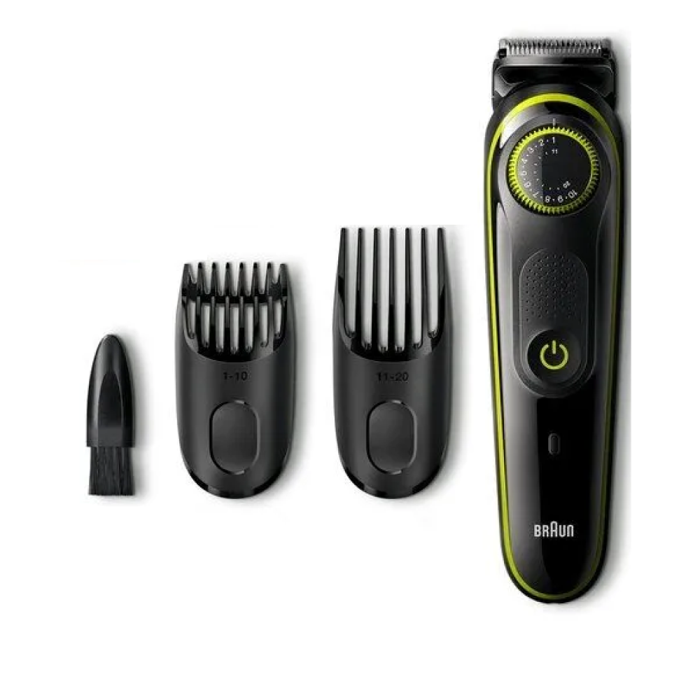 бритвенный станок, кабель для зарядки, насадка для бороды, сумка для хранения, футляр, щеточка