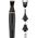 в комплекте: регурируемая насадка-гребень, Роторная насадка-триммер для зон носа/ушей, двойной гребень для бровей