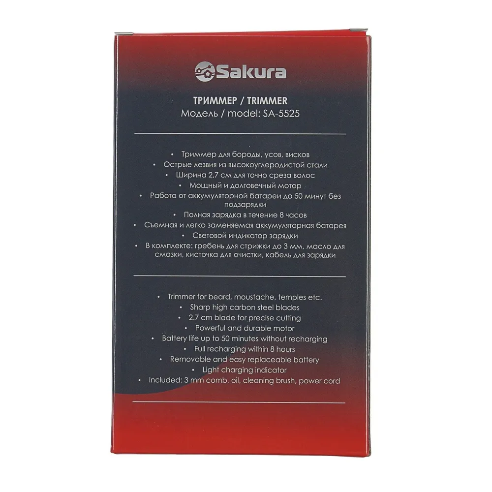 Триммер для бороды, усов, висков и т.д., насадка-гребень 3 мм. Лезвие из высокоуглеродистой стали (ширина - 2,7 см). Работа от никель-кадмиевого (Ni-Cd) аккумулятора типа АА, время работы без подзарядки - 50 минут! Полная зарядка в течение 8 часов! Съёмная и легко заменяемая аккумуляторная батарея!