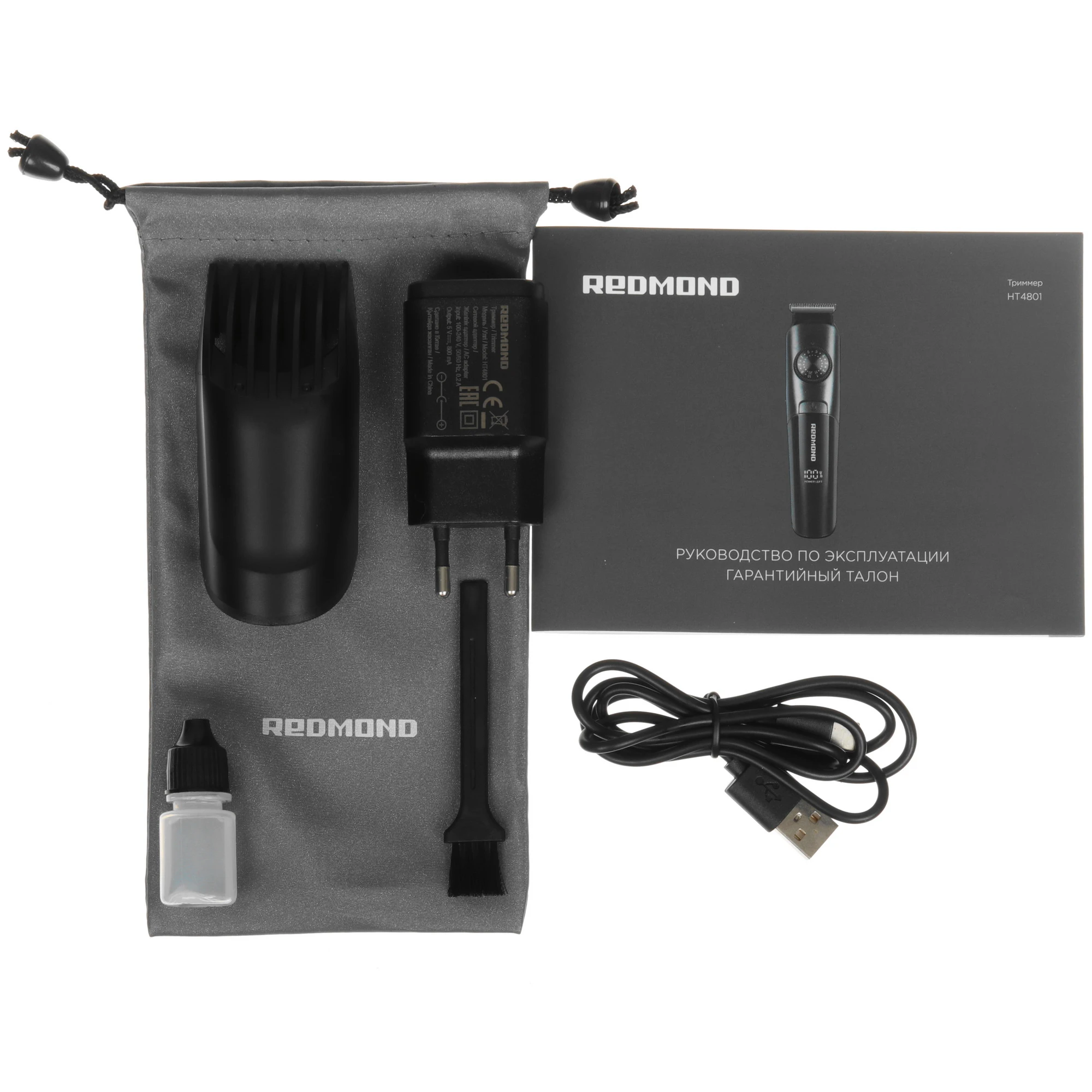 2 насадки, USB кабель Type-C, адаптер питания, документация, дорожный чехол, смазка для лезвий, ещё
