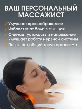 Вид массажа: Роликовый, Оздоровительный, Разминание, Расслабляющий, Шиацу, Лечебный