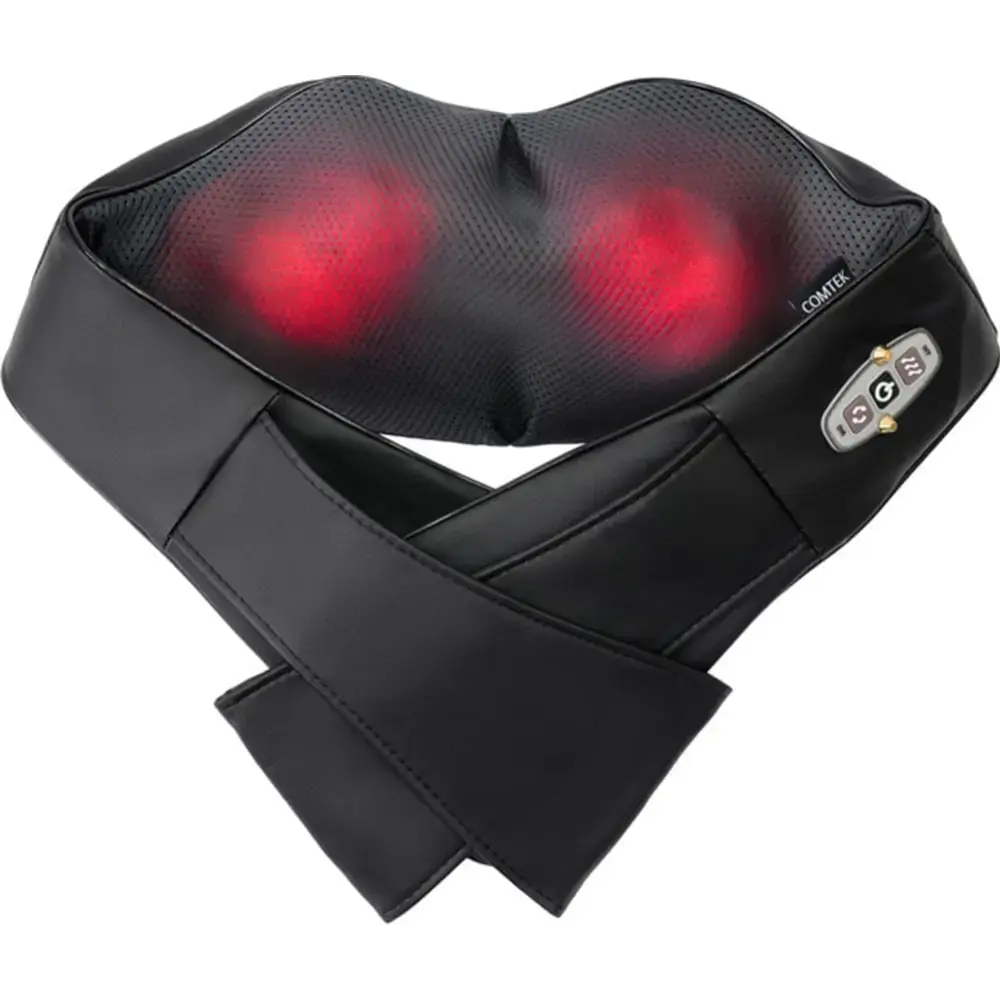 Массажер обладает возможностью подогрева и 8-мью массажными роликами, выполняющими растирающий вид массажа в области шеи и плеч по и против часовой стрелки. Уникальность модели еще в том, что массажер может работать как от розетки, так и от прикуривателя в автомобиле, тем самым облегчает напряженную и изнуряющую дорогу, снимает напряжение и боли в области шейно-плечевого устава.
