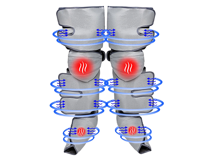 Мощный компрессор попеременно или одновременно нагнетает воздух в воздушных камерах манжет по всей длине ноги, выполняя лимфодренажный массаж стоп, икр и бёдер. В результате комбинированного давления на икры, стопы и бедра исчезают подкожные жировые отложения на ногах, снимается усталость, стенки сосудов приходят в тонус, что предотвращает варикозное расширение вен.