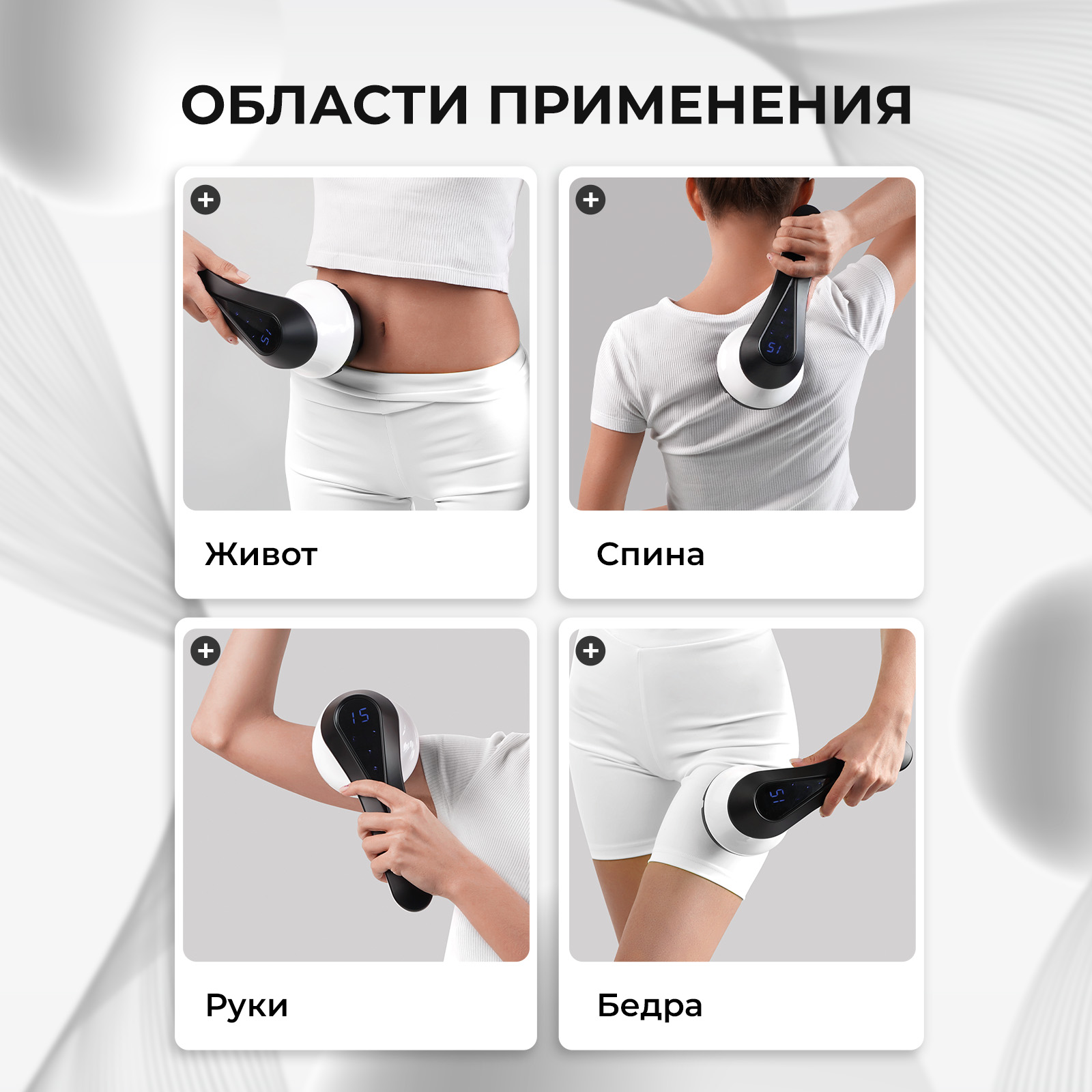 Антицеллюлитный, Вибрационный, Расслабляющий, Роликовый
