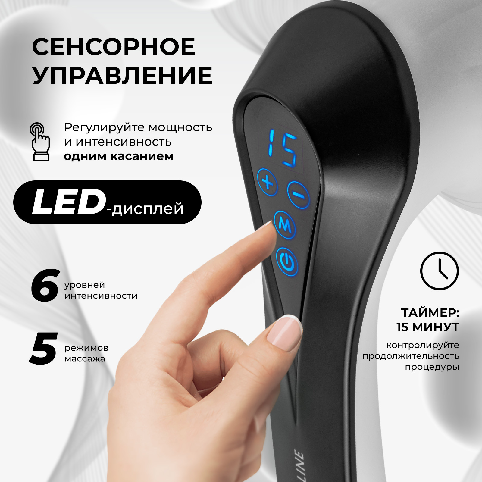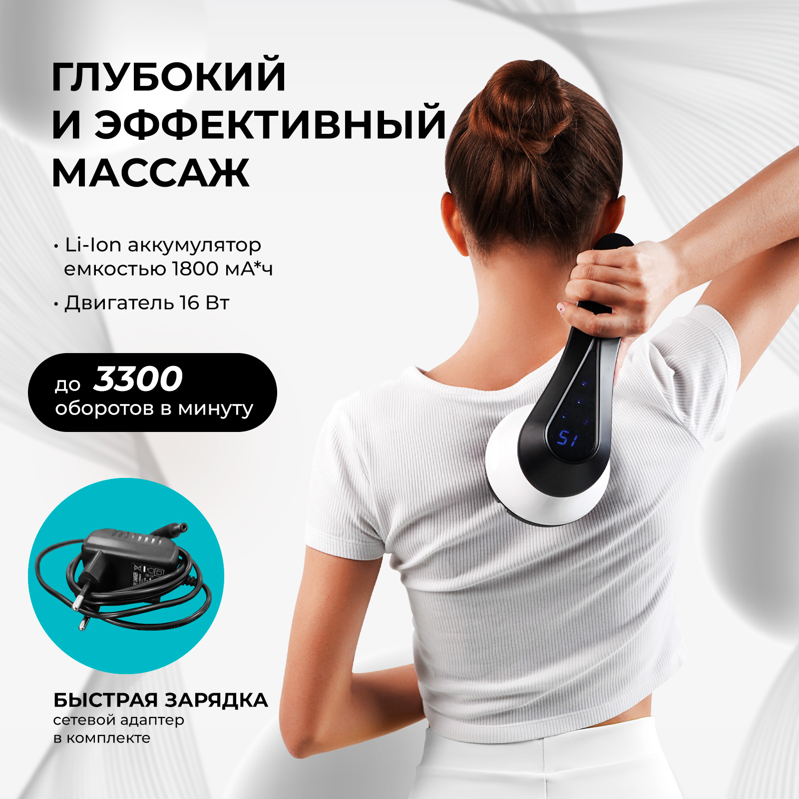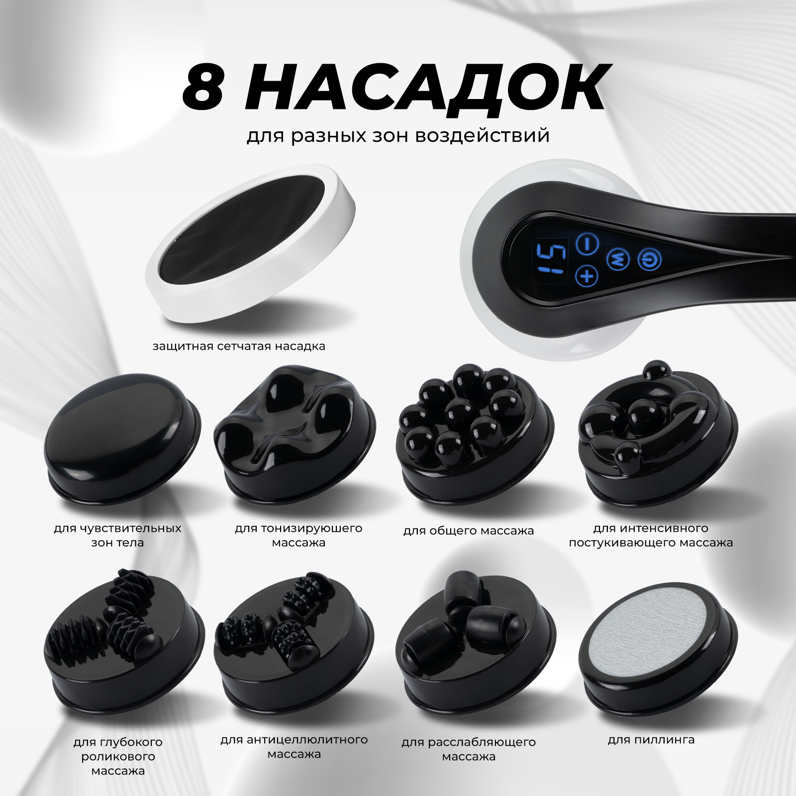 Среди ключевых преимуществ массажера – 9 различных насадок, каждая из которых предназначена для определенного вида массажа. Хотите расслабить спину, проработать мышцы после тренировки или просто снять усталость? Этот массажер справится с любой задачей благодаря 6 уровням интенсивности и 5 режимам массажа.