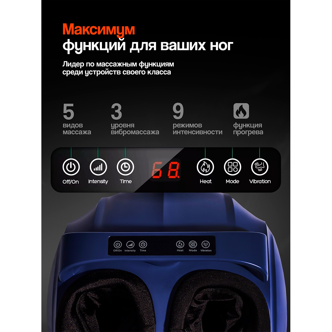 Можно настроить их оптимальное давление благодаря 9 режимам интенсивности. 5 автоматических программ массажера для стоп позволяют выбрать комфортный режим массажа.