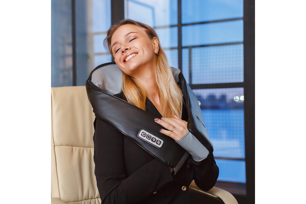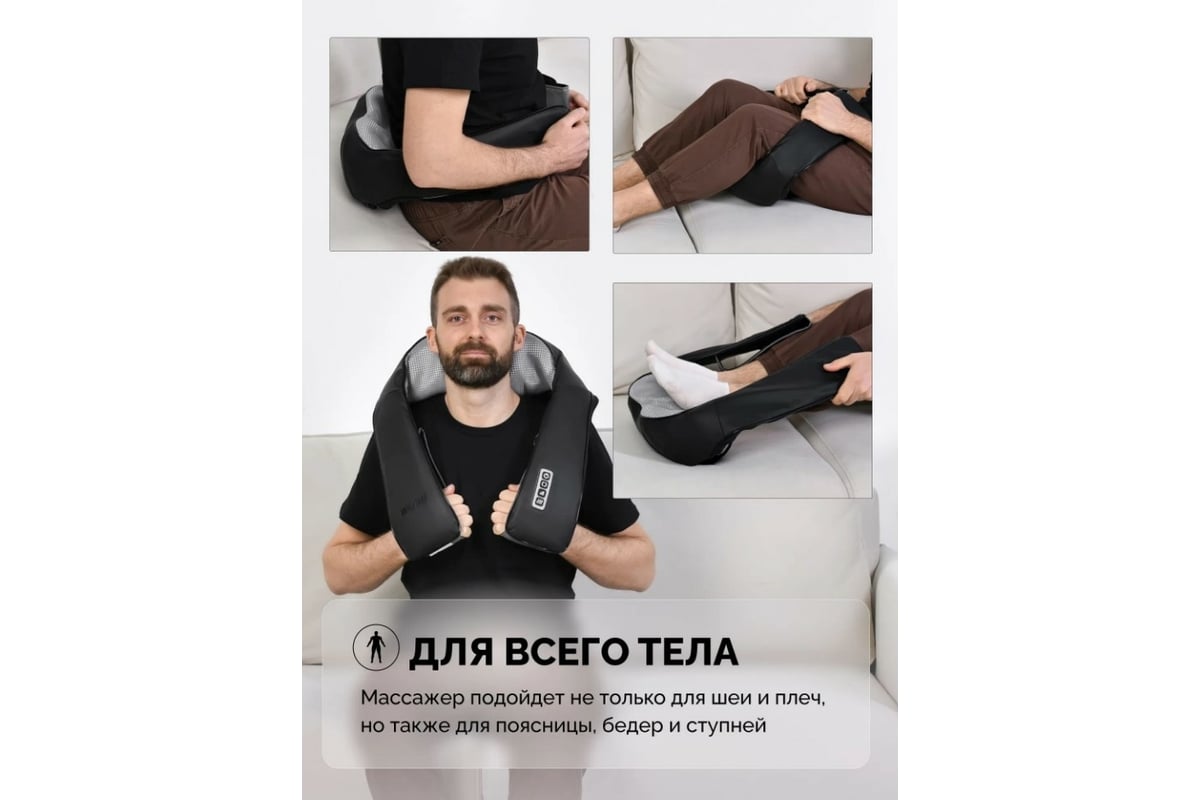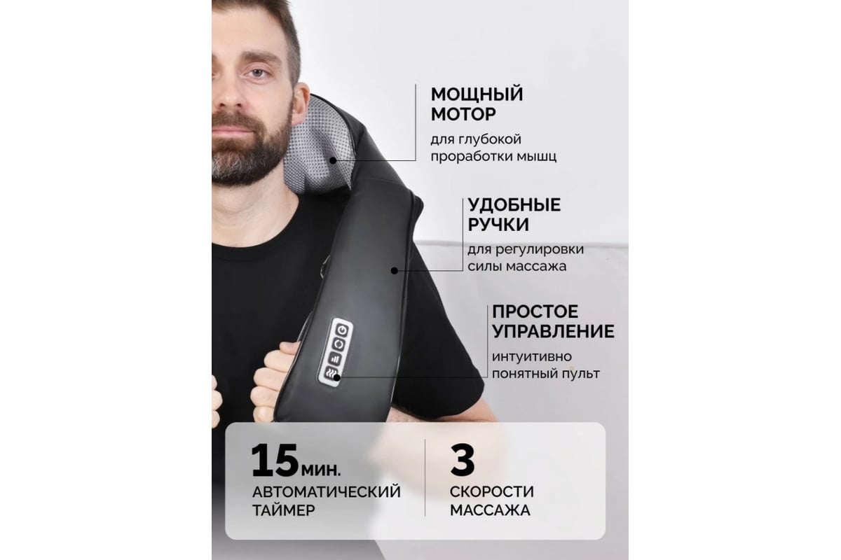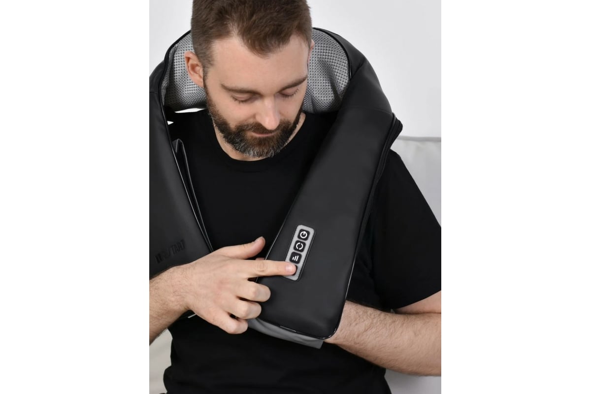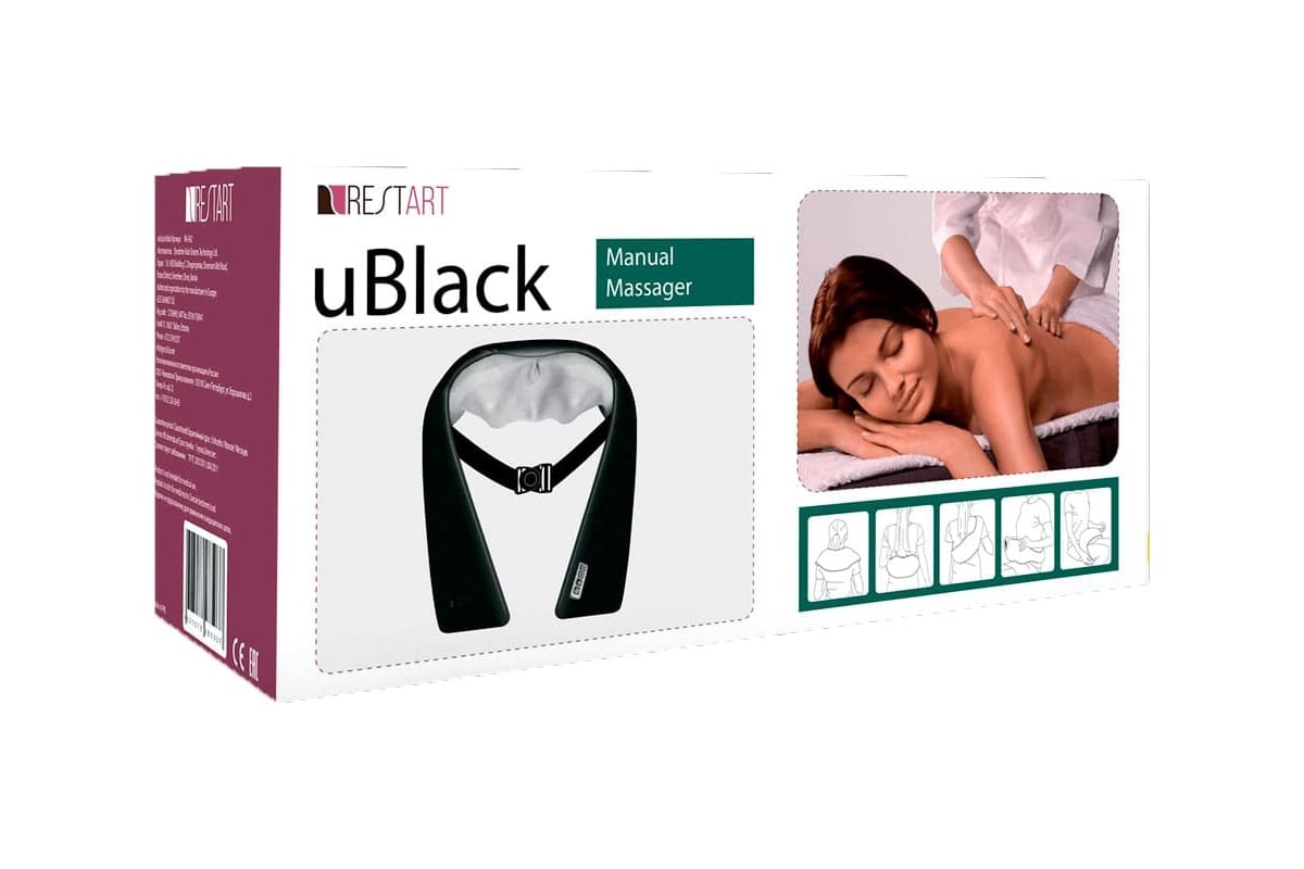 Удобный и многофункциональный массажер с объёмными роликами 3D, которые имитируют руки. Такой массажер отлично прорабатывает шейно-плечевую зону, зону поясницы, бедра и может использоваться даже при массаже стоп. У массажера 3 скорости, есть выбор направления вращения роликов; инфракрасный прогрев (эту функцию при желании можно отключить); удлиненные ручки (с помощью ручек силу массажа легко регулировать). Ремень крепления позволяет установить массажер uBlack на выбранном участке тела. Например, для массажа поясничного отдела. Утяжелитель в основании корпуса обеспечивает плотное прилегание роликов к телу. Автоматическое отключение через 15 минут работы. В комплекте есть сетевой кабель, адаптер для прикуривателя (массажер можно использовать как дома, так и в машине). С uBlack вы получите качественный массаж, который отлично расслабит ваши мышцы. При этом силу массажного воздействия вы сможете самостоятельно регулировать массажными ручками.