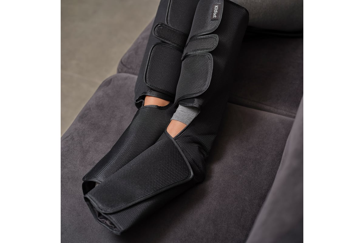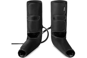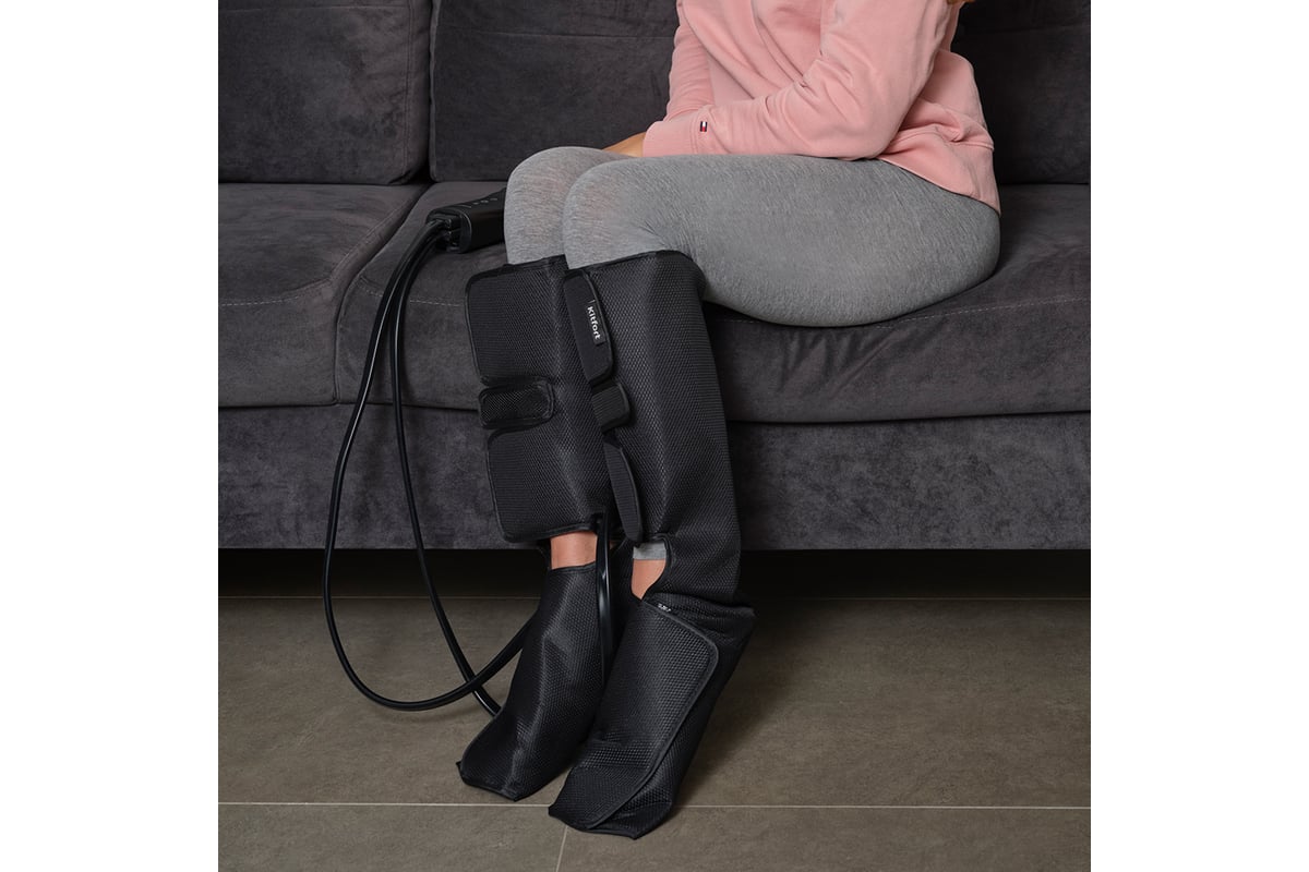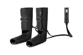 Массажер сделан в виде двух воздушных манжет, которые надеваются на ноги и удобно крепятся с помощью липучек. Управление массажером осуществляется с помощью пульта. Вам нужно подключить устройство к сети, на пульте управления выбрать силу сжатия, зону массажа, а также нагрев стоп при необходимости. Всего три уровня сжатия, две зоны массажа и три уровня нагрева стоп. Массажер сжимает ноги, создавая эффект компрессии в той зоне, которую вы выбрали. Нагрев стоп можно настроить или выключить вообще.